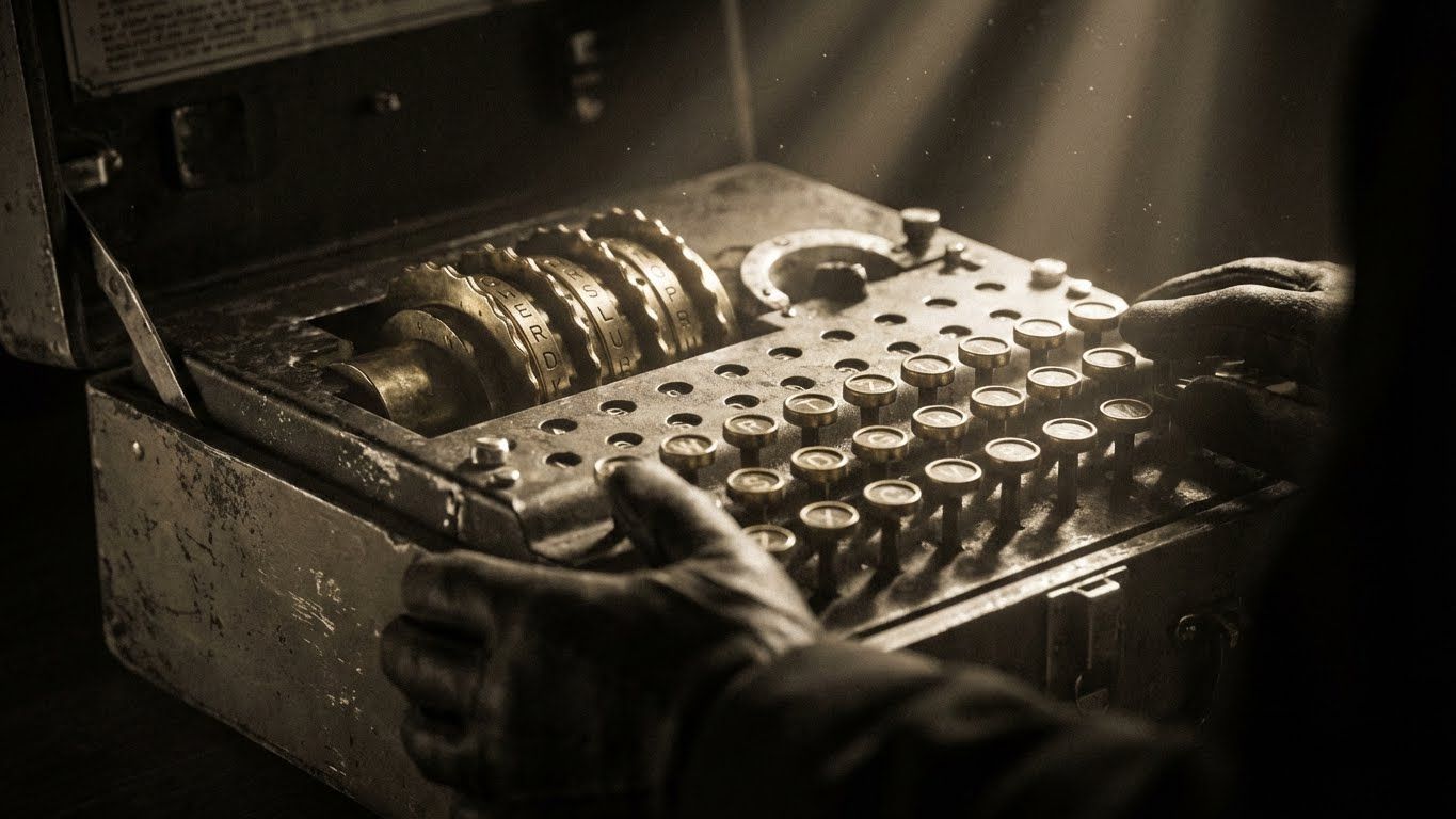 No século XX, durante a Segunda Guerra Mundial, a criptografia deixou de ser um trabalho manual e tornou-se mecânica. A famosa máquina Enigma, utilizada pelos alemães, parecia uma máquina de escrever comum, mas escondia um sistema complexo de rotores internos. A cada tecla pressionada, os rotores giravam e mudavam a regra de substituição. Se você digitasse "A" três vezes seguidas, a máquina poderia gerar três letras completamente diferentes na saída.